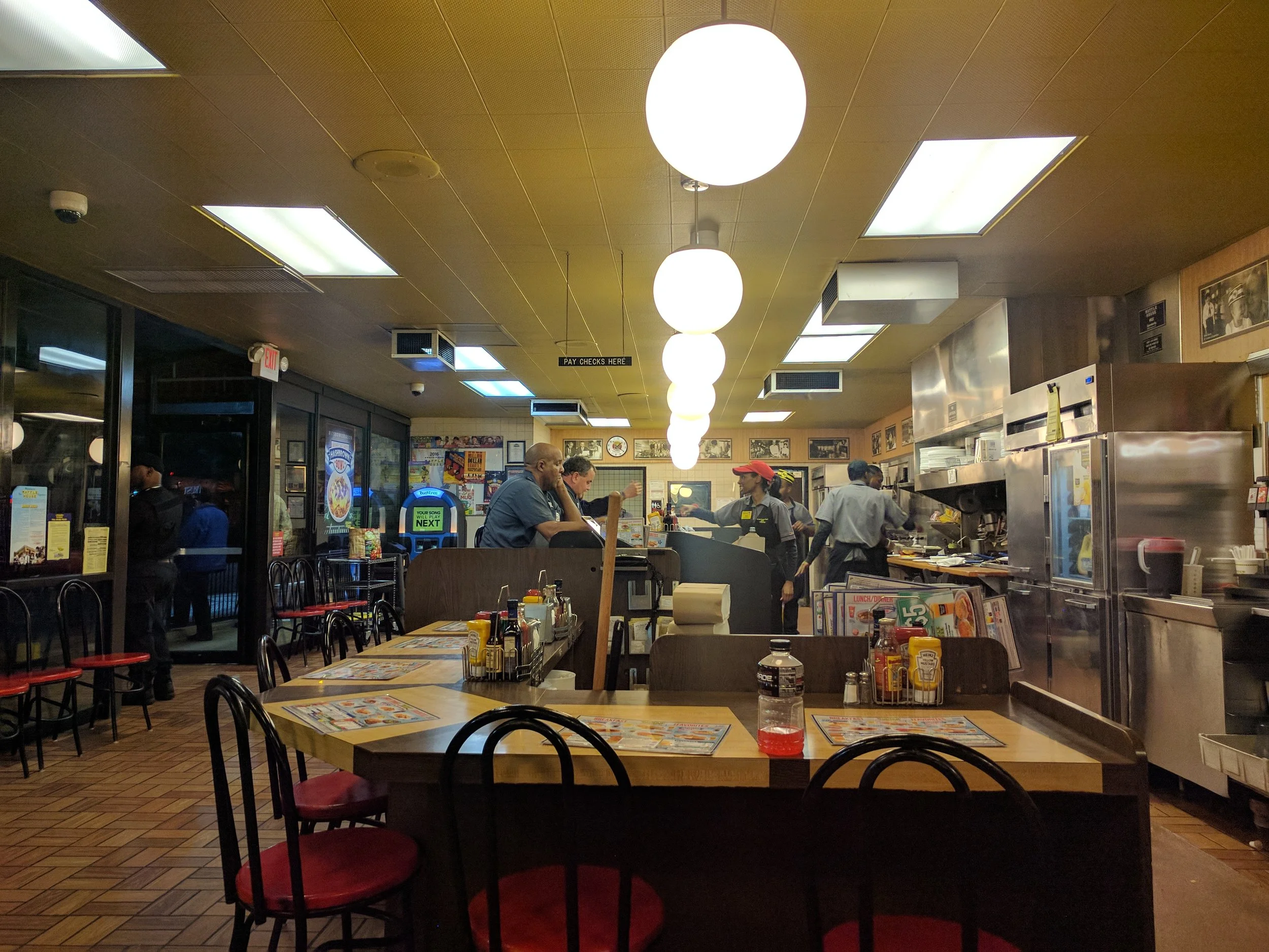 But Waffle House was perhaps rather ugly. The maroon parquet floors reminded me of a DMV office built in the 1970s. The flexible wooden panels glued to the booths were in need of a deep cleanse. The sepia tones were just too damn sepia if you pardon my French. Yet, I do admit there was a certain charm in all of this, although I still prefer the more traditional aesthetic of the New York City diner.